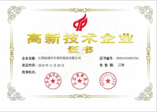 高新技術(shù)企業(yè)認定的順利通過,是對我公司自主研發(fā)能力和技術(shù)創(chuàng)新能力的充分肯定。以科技為基礎,以創(chuàng)新為矯翼,推動企業(yè)技術(shù)產(chǎn)業(yè)化,將是標榜汽車未來的發(fā)展之路。在國家高企政策的扶持下,標榜汽車必將迎來更加輝煌的明天。