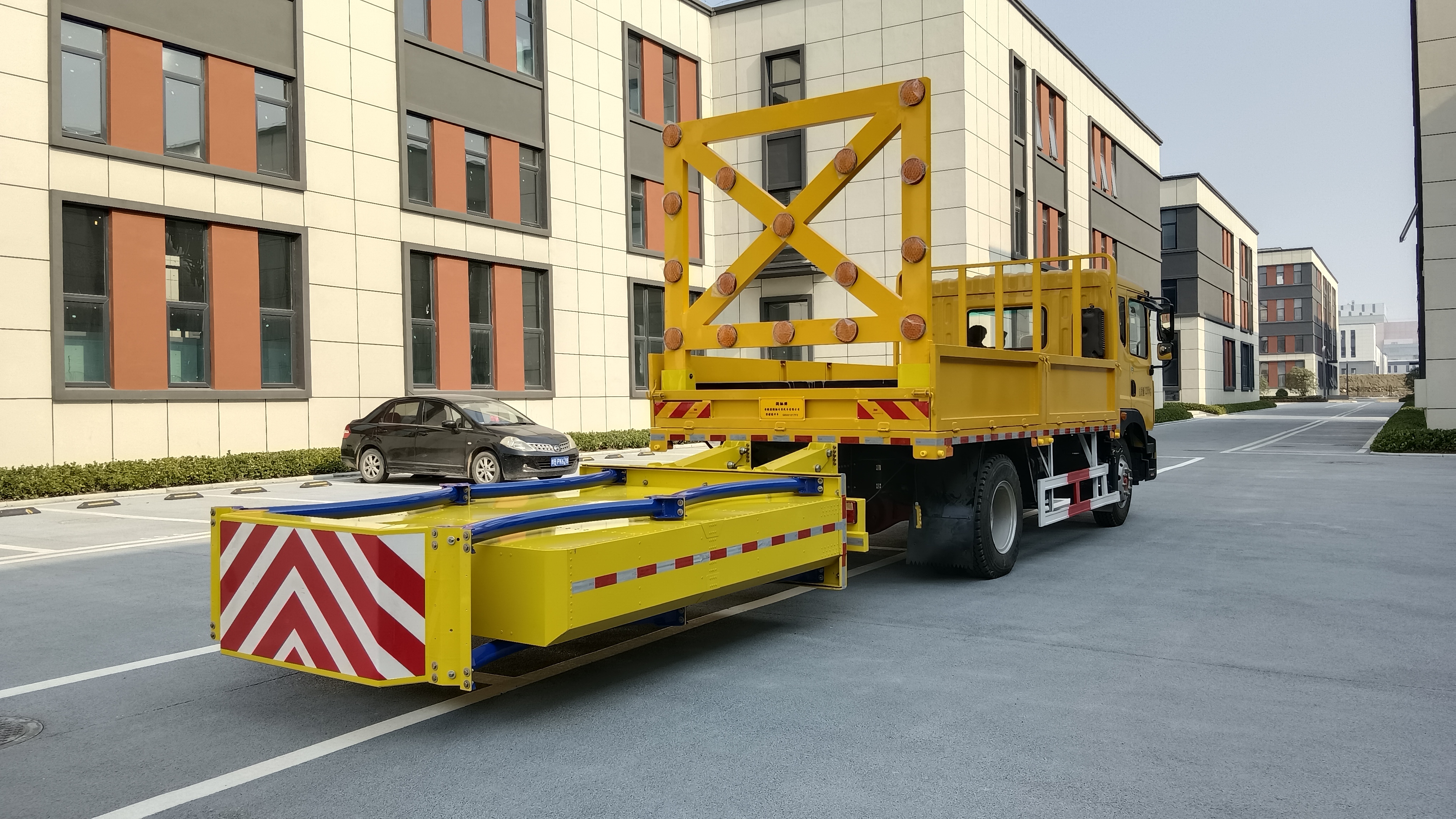 警示灯光要求 | 防撞缓冲垫工作及行驶过程中均具备同步灯光系统(转向灯、刹车灯、行车灯、雾灯、示廓灯、侧标示灯等) | ||